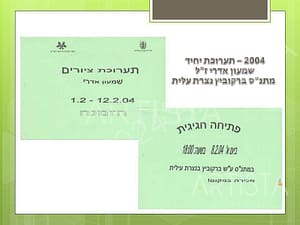 2013 Joint Exhibition "Artists of the Jezreel Valley" - Timrat 2013 "Local Creation" TV Show with Tal Man 2013 Exhibition "Divine Grace" - Old Jaffa 2013 Exhibition - Beit Gabriel 2014 Group Exhibition of "Artists of the Jezreel Valley" - Timrat