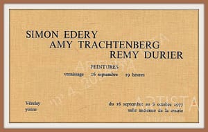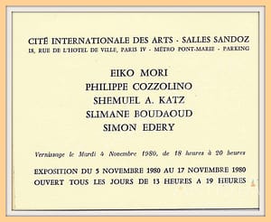 1972 Exhibition at the Tamaroc Gallery (2) - France 1977 Exhibition at the Municipality of Vézelle (3) - France 1978 Awarded the La Casa de Velazquez Prize (4) - Spain 1980 Exhibition and Award at the International House of Arts - France 1981 Group Exhibition at the International Festival of Jewish Art 1981 Exhibition at the Balerca Gallery (5) - Colombia 1981 Exhibition at the BMW Gallery (6) - Germany 2003 Exhibition in Budapest - Hungary